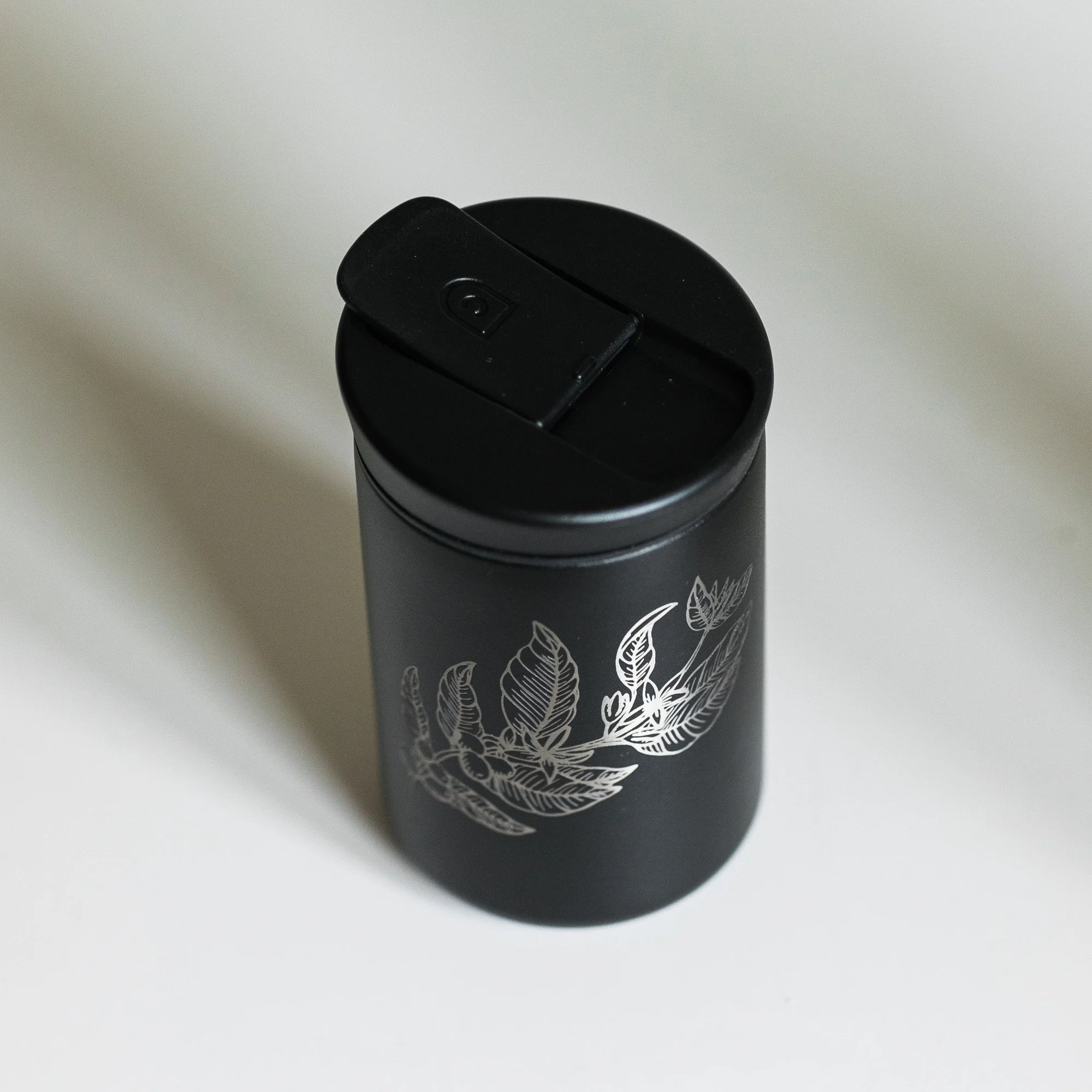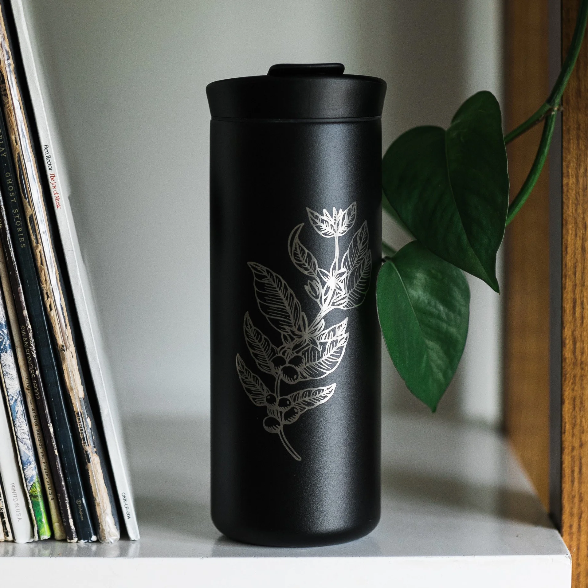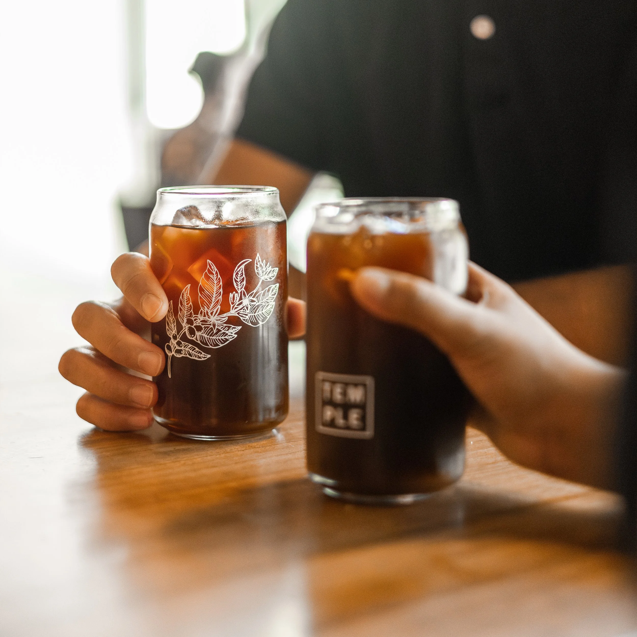 The Origin Drinkware collection features 8oz and 16oz tumblers and a glass can, each showcasing a hand-drawn coffee plant illustration I created. The design is engraved on the tumblers and screen printed on the glass can, paired with an alternate logo I designed. Named Origin, the collection celebrates coffee’s roots and the farms where it begins.